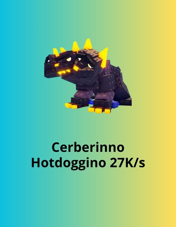 Cerberinno Hotdoggino to mityczny, trójgłowy Brainrot klasy Rainbow, który generuje ponad +27K/s i jest absolutnym potworem pod względem zarobków. Ten legendarny stwór to nie tylko status – to symbol dominacji i potęgi w świecie Plants vs Brainslot. Jeśli chcesz być w czołówce – to właśnie Twój moment.