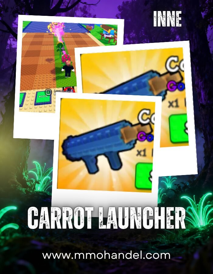 Carrot Launcher (Wyrzutnia Marchewek) to najpotężniejsze narzędzie ofensywne w grze, posiadające elitarny status „Godly”. Ta broń wystrzeliwuje marchewki, które zadają potężne 500 obrażeń każdemu trafionemu Brainrotowi. To absolutny „game-changer”, który pozwala na błyskawiczne eliminowanie fal wrogów i znacząco ułatwia walkę z najsilniejszymi bossami.