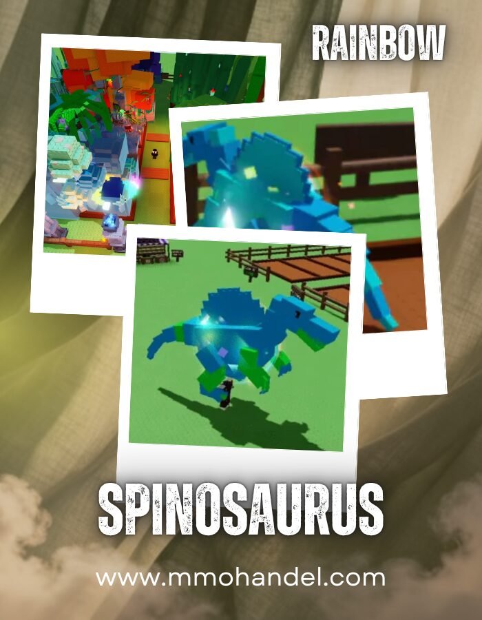 Rainbow Spinosaurus to absolutny gigant i jeden z najrzadszych zwierzaków, jakich można spotkać w grze. Jego potęga tkwi w dwóch unikalnych zdolnościach: po pierwsze, posiada on pasywną aurę, która zwiększa szansę na dodatkowe zbiory ze wszystkich roślin w pobliżu. Po drugie, jego aktywna umiejętność pozwala mu regularnie zanurkować, a po wynurzeniu przynosi on losową liczbę (od 1 do 10) skrzynek z przynętami (Bait Box)!